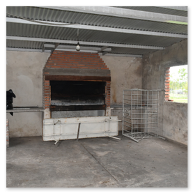 - Salón Familiar: 80 personas, 80 sillas, 10 mesones, 3 ventiladores, 1 freezer, cocina con pileta y mesada. Baños de Damas y Caballeros.